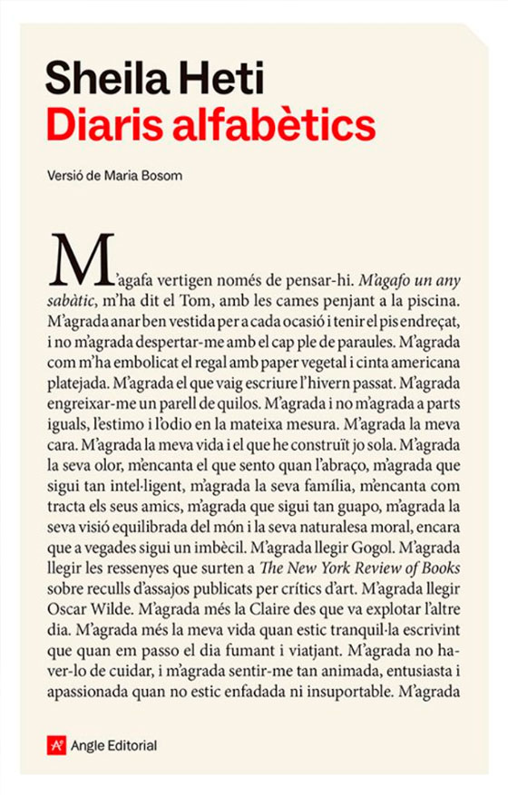 Sheila Heti va seleccionar unes 500.000 paraules dels seus diaris personals escrits al llarg d’una dècada, va posar totes les frases en un full de càlcul i les va ordenar alfabèticament. Va retallar i retallar fins a deixar-hi unes 60.000 paraules. Són els seus _Diaris alfabètics_, que reorganitzen des d’aquesta nova lògica els fets de la seva quotidianitat: els amics, els amors, els anhels, les reflexions sobre l’art i l’escriptura… Com es relata una vida? Com s’ordena? A l’estil de Perec i de Queneau, Heti fa miques la narrativa convencional i, a canvi, ens ofereix una allau incessant d’esclats brillants, on l’atzar convida al vagareig de la consciència tant de l’autora com del lector. Seguint amb aquest joc, la traducció també s’ha reordenat alfabèticament, de manera que aquests Diaris alfabètics SÓN ELS MATEIXOS QUE L’ORIGINAL I ALHORA RADICALMENT ÚNICS.